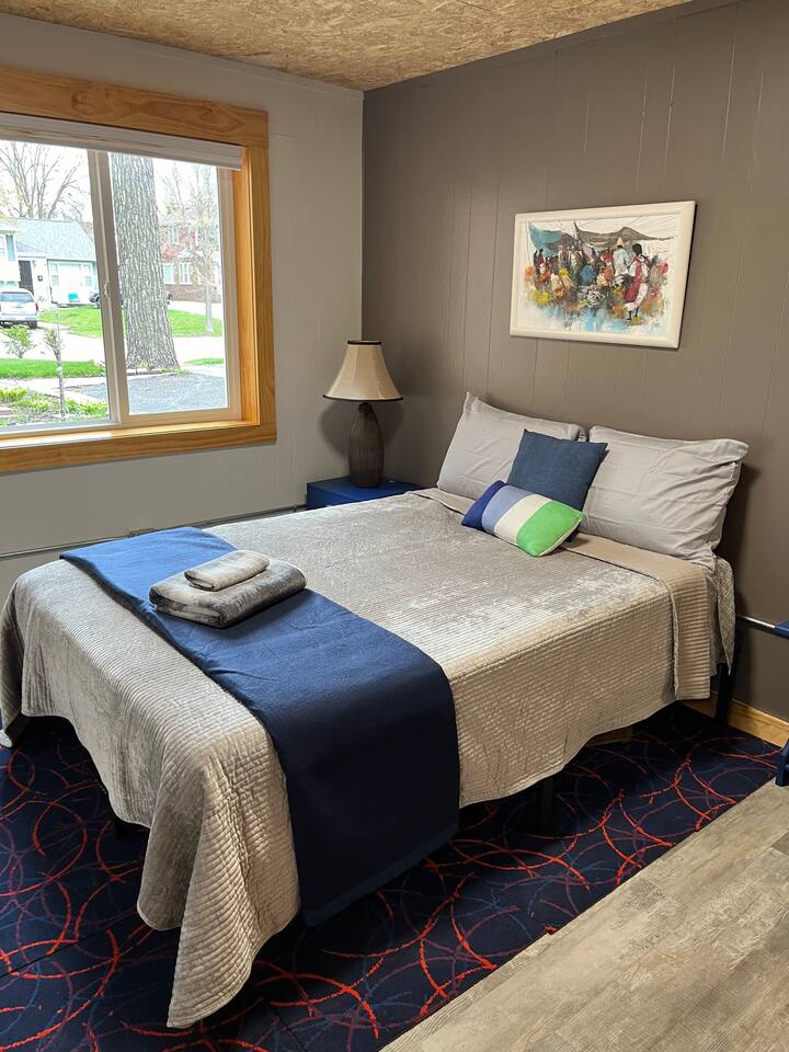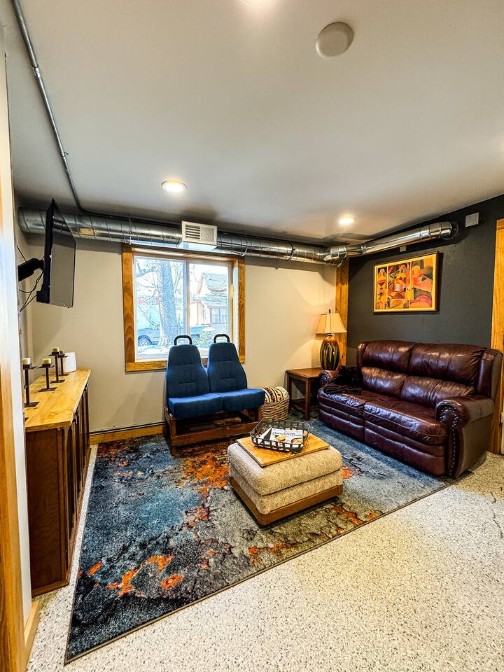 MY FLAT is close to everything, making it easy to plan your visit. A sweet apartment that is a perfect place to rest after a busy day. It has two work stations, TV area with creative furniture, fully equipped kitchen, three bedrooms (a full bed in two and a queen bed in the other). A spacious laundry room and a clean bathroom with a shower are in the lower level. MY FLAT will be perfect for 3 single friends or 3 co-workers.