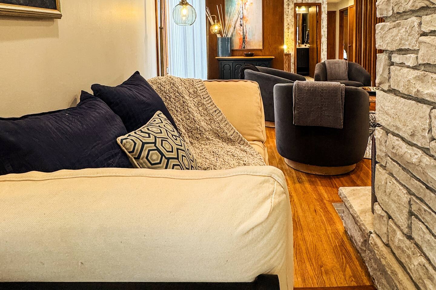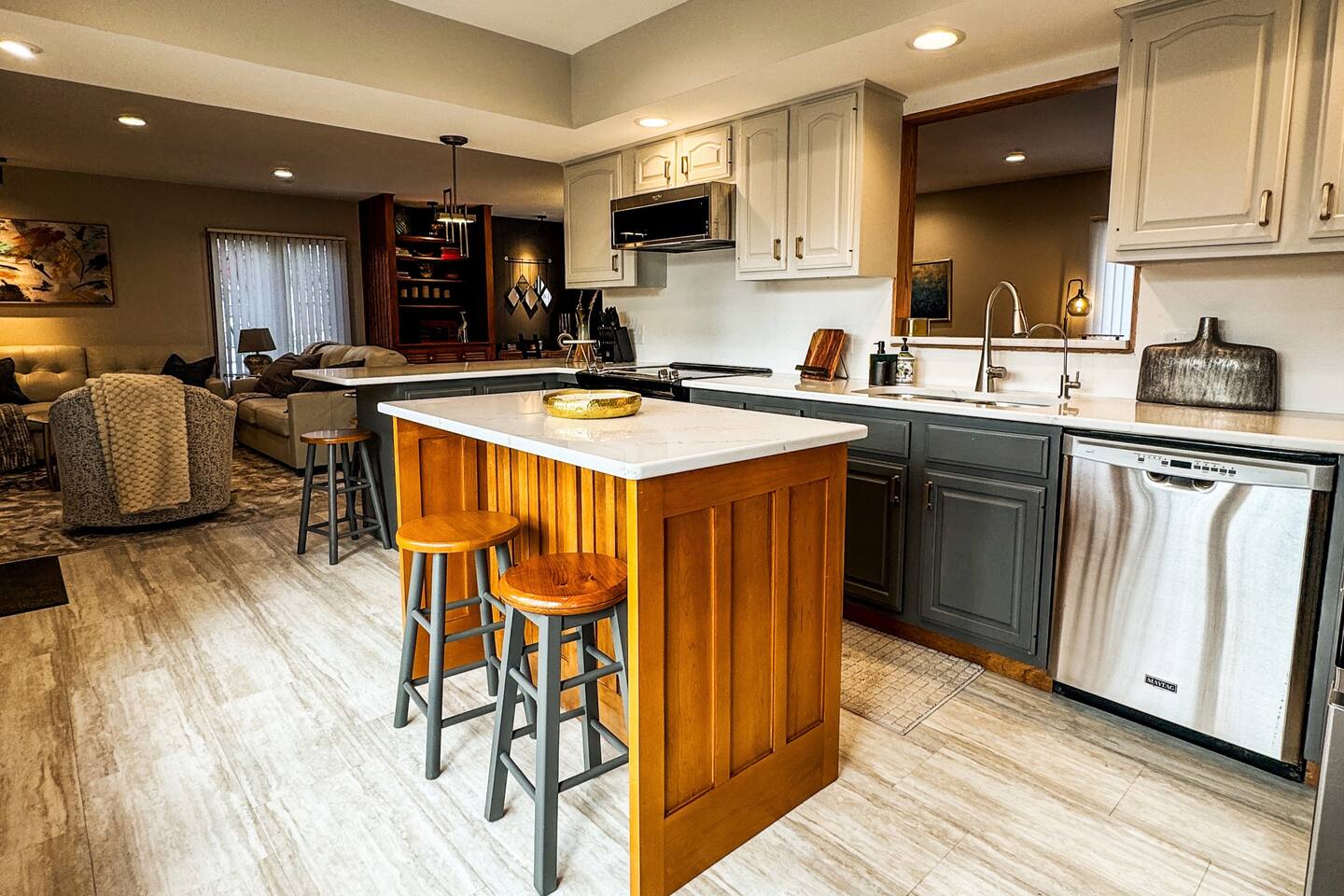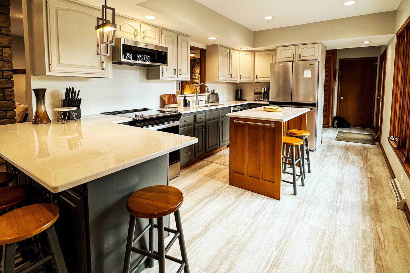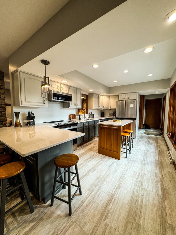 Your family will love it here. Mom will love cooking with the all new quartz countertops. There are lots of stools to sit around the two islands. The TV is so big you can watch in from three rooms. Each room was professionally decorated. Lots of details went into making this a dream short term rental. Come and enjoy it. You won't regret it.