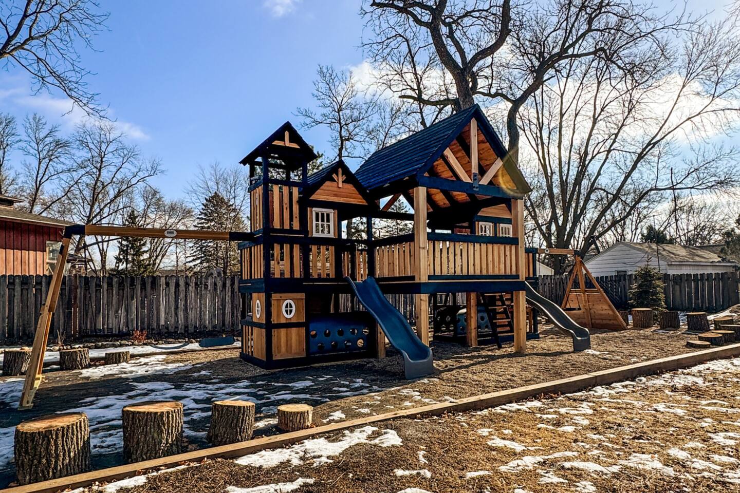 Come on in! Huge yard. Huge playground. Huge house. Huge patio. Huge TV. Sleeps up to 11! You can't go wrong. When you come, park in front of the garage or on the side street. Then come to the Front Door. A Passcode will be sent to you. The LEFT back door on the stone patio also has the same passcode if all the technology works out correctly. But try the front door first:)