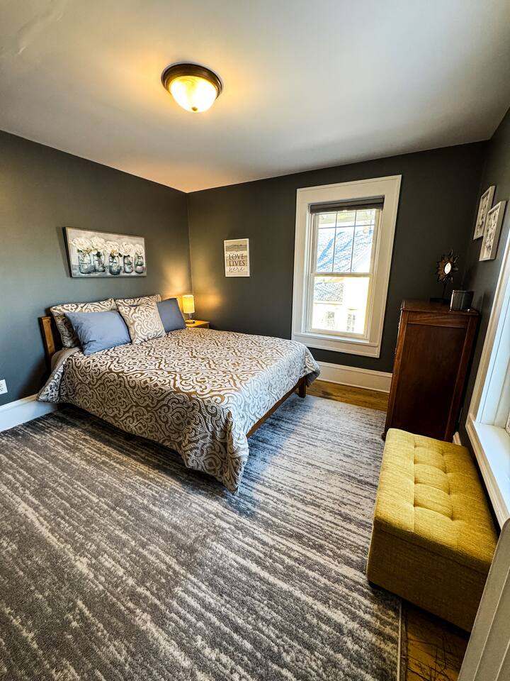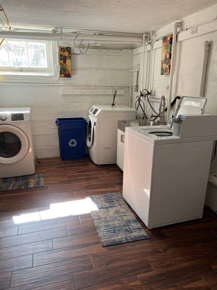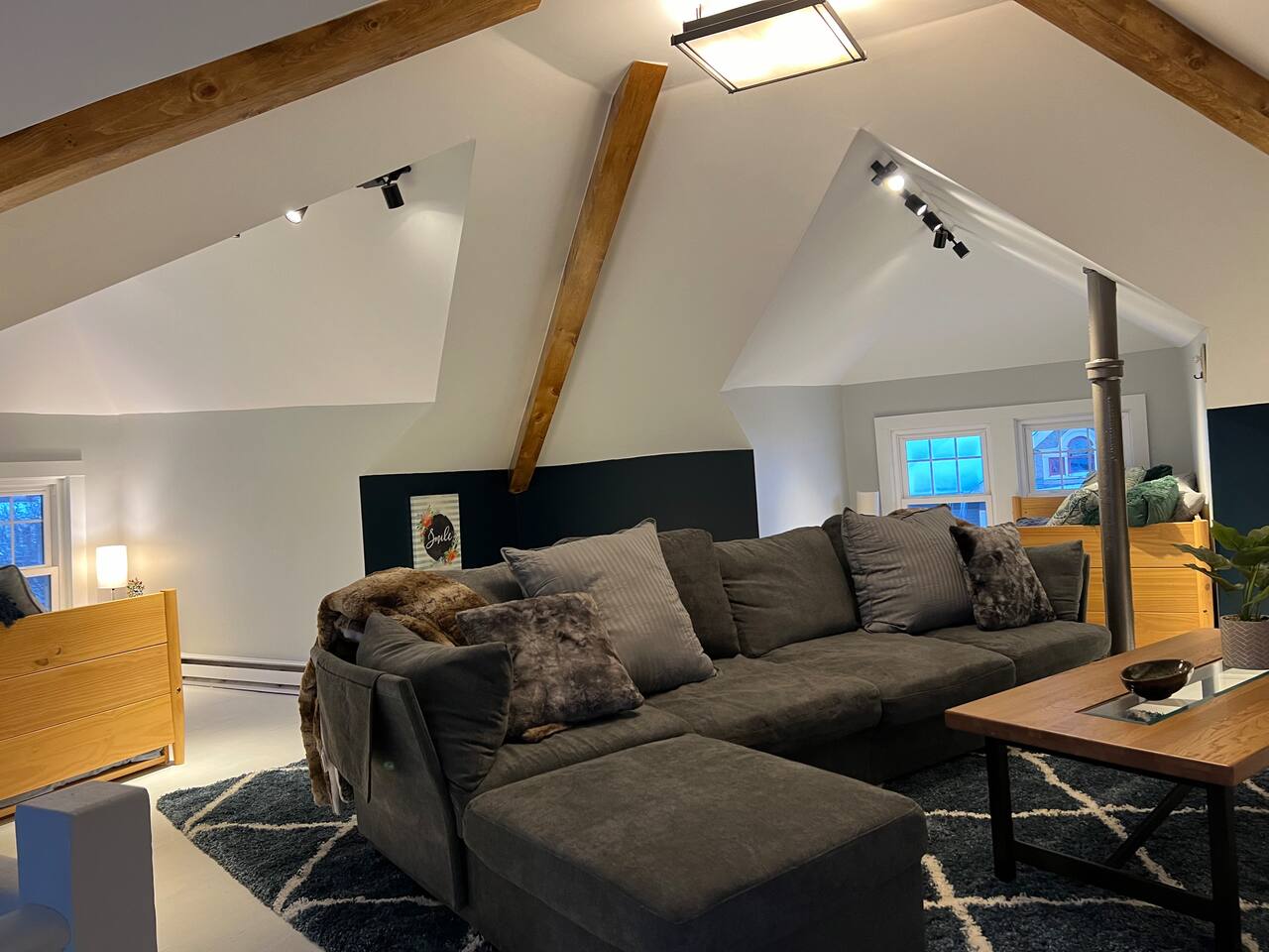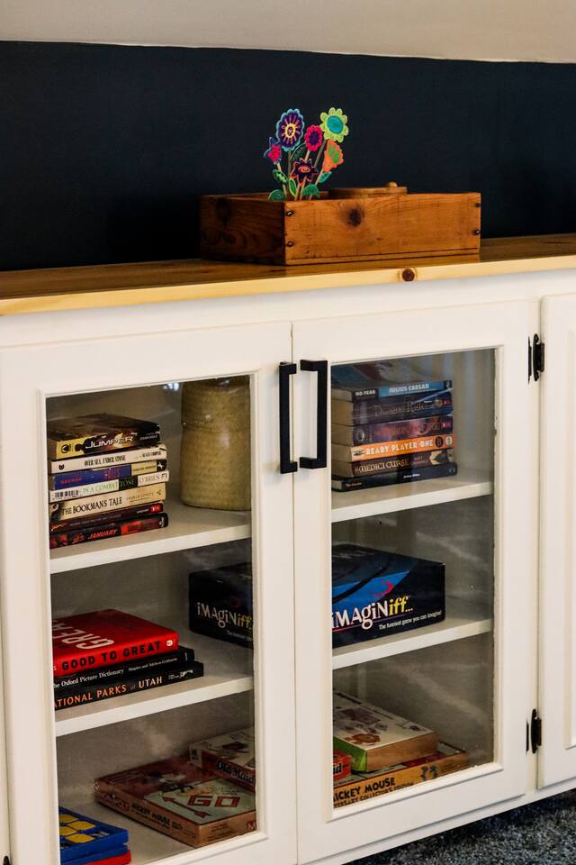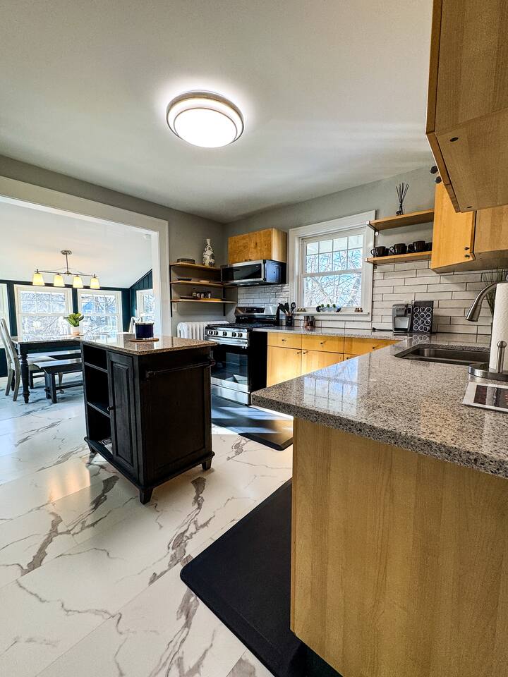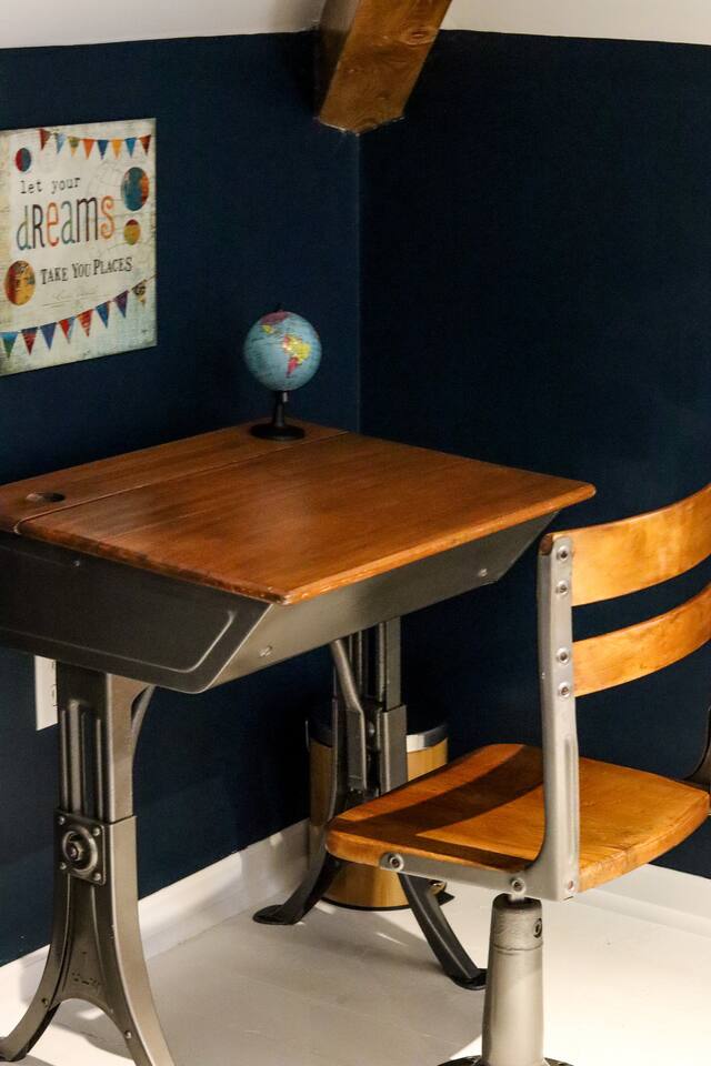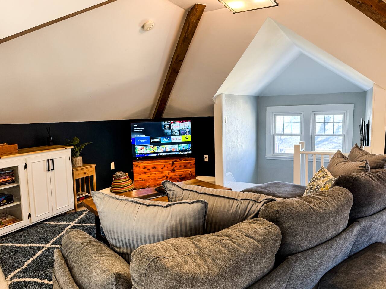 When my kids saw this unit they wanted to move in. I designed it for families to have fun and create memories. Books, puzzles, games, toys and attic nooks are a few of the things they will enjoy. Full eat-in kitchen with a view of the backyard has everything you’ll need. There is a crib and a desk in one of the debrooms. The beautifully finished attic has a sectional, TV, and two day beds each having an additional trundle bed as well. Kids love sleeping up there. Such a great space.