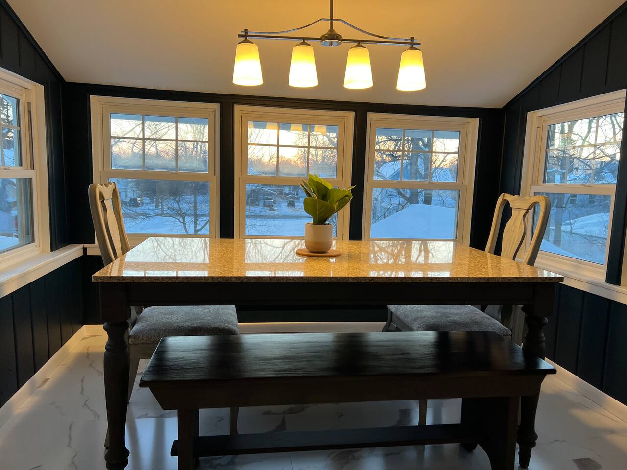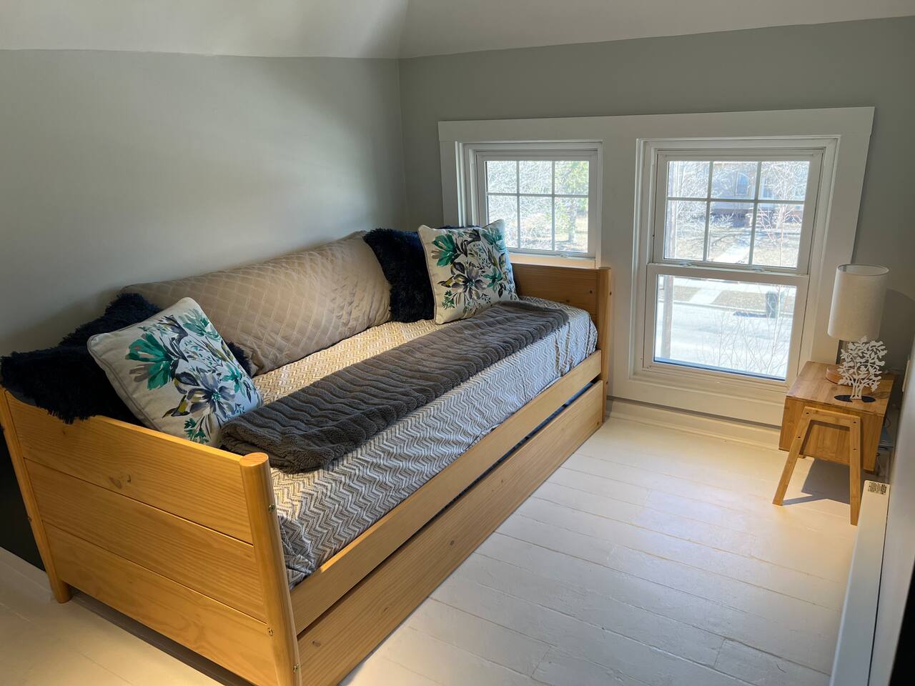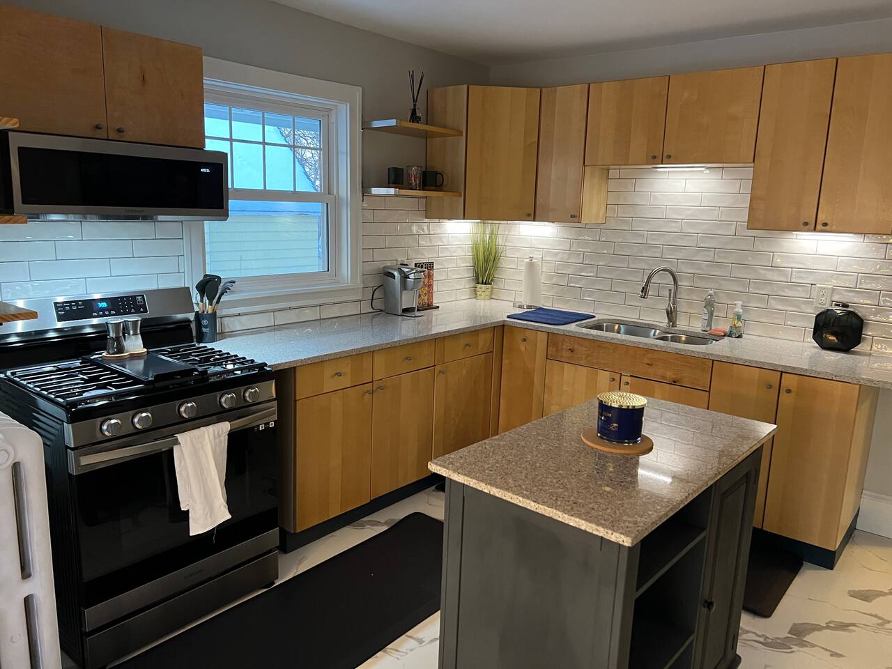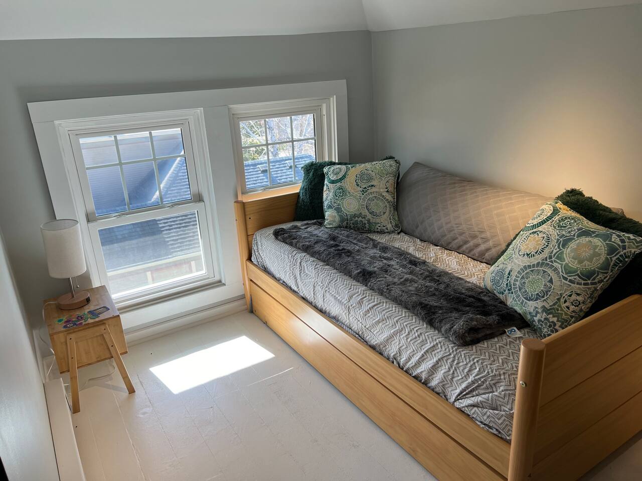 When my kids saw this unit they wanted to move in. I designed it for families to have fun and create memories. Books, puzzles, games, toys and attic nooks are a few of the things they will enjoy. Full eat-in kitchen with a view of the backyard has everything you’ll need. There is a crib and a desk in one of the debrooms. The beautifully finished attic has a sectional, TV, and two day beds each having an additional trundle bed as well. Kids love sleeping up there. Such a great space.