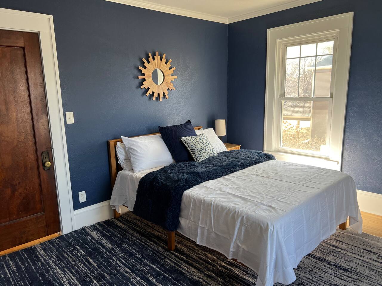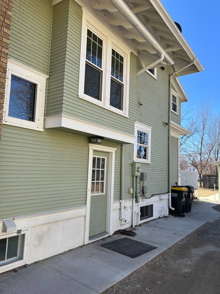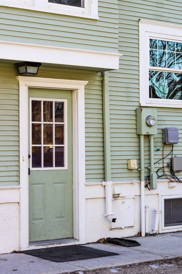 Enter in the side door with a key pad. This gives access to a shared public laundry room and entrance to three AIRBNB units. Each unit is private and has their own key pad on their door.